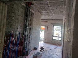– Na chwilę obecną mamy w zaawansowaniu konstrukcję, która jest praktycznie zakończona. Rozkładamy instalacje elektryczne i wodno-kanalizacyjne. Przygotowana już jest powierzchnia pod posadzkę na parterze – wyjaśnia Mateusz Janik, kierownik budowy.