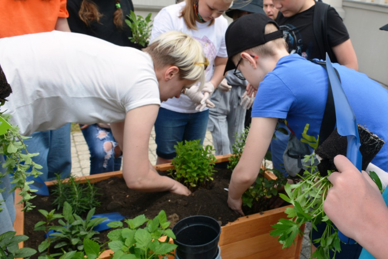Przed sadzeniem odbyły się zajęcia, podczas których dzieci dowiedziały się, do czego można wykorzystywać zioła i jak należy o nie dbać. Następnie, przy pomocy szpadelków i grabek, każde posadziło jedną roślinę. Do wyboru były m. in. mięta, lubczyk, majeranek, cząber, bazylia i szałwia. Po nasadzeniu zioła zostały podlane. Dodatkowo każdy z uczestników dostał także małą doniczkę z roślinką do hodowania w domu.