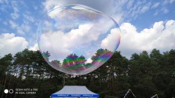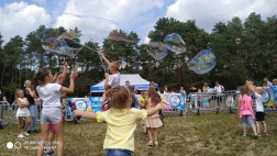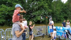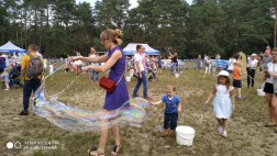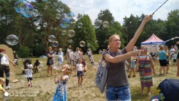 Przybierające rozmaite kształty i rozmiary bańki powstawały z 600 litrów płynu. I choć najlepiej puszczać je przy delikatnym wietrze, po deszczu, dzisiejsza pogoda nie przeszkadzała nikomu. Relaksująca zabawa na świeżym powietrzu, przy dźwiękach muzyki na żywo, przyciągnęła wielu fanów.