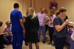 Obecna także była grupa dzieci z przedszkola, która na dziedzińcu szpitala wypuściła w niebo fioletowe baloniki.