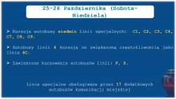 – W apogeum, czyli 1 listopada, uruchamiamy 10 specjalnych linii – od C1 do C10 – które będą obsługiwać wszystkie kieleckie cmentarze. Dodatkowo wzmocnione zostaną linie 4, 30 i 44, kursujące jako 4C, 30C i 44C – przekazała Barbara Damian.