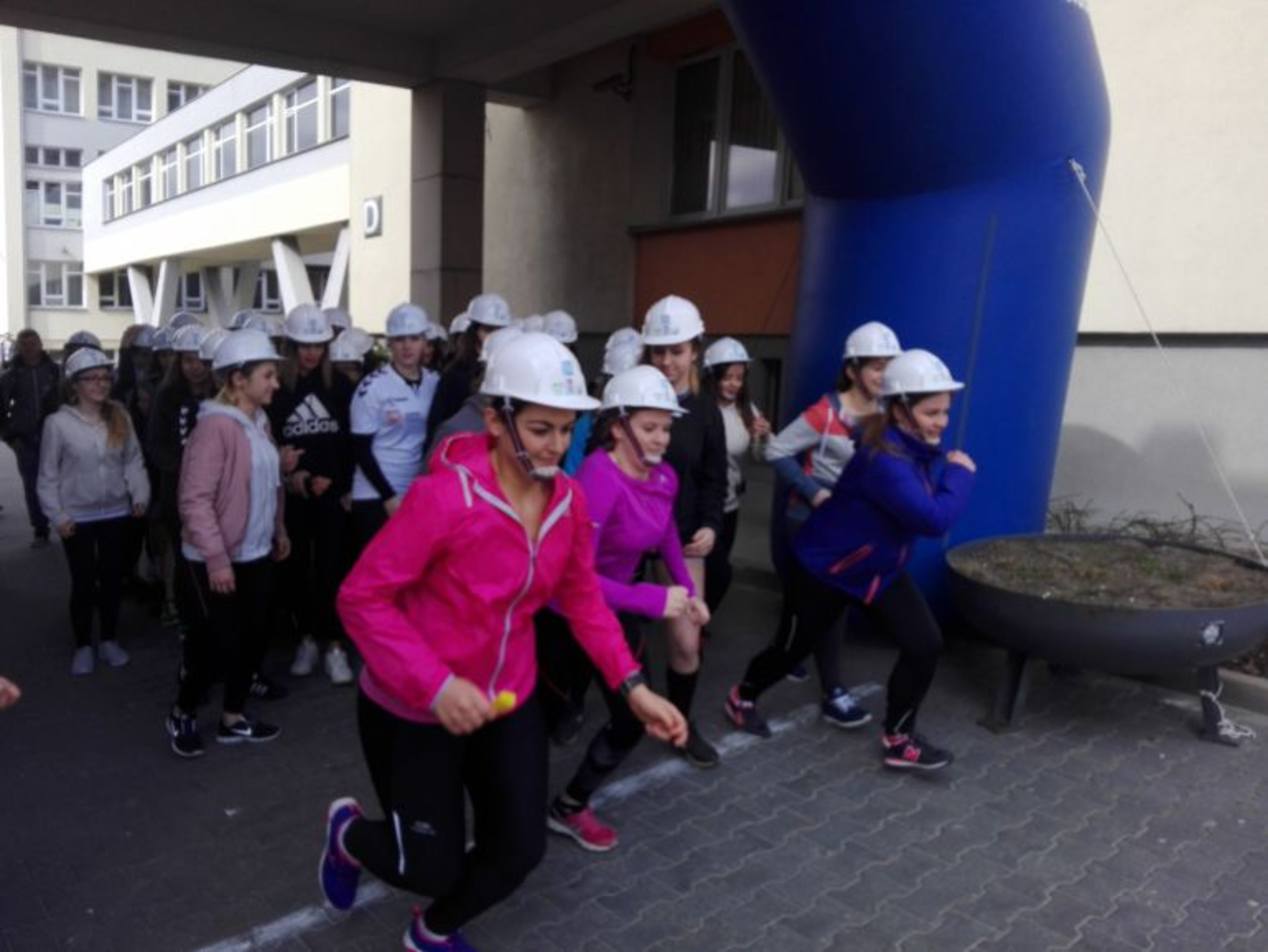 Niezwykły dzień otwarty uczelni owocował w niezwykłe atrakcje, takie jak na przykład bieg w kaskach przez kampus uczelniany.