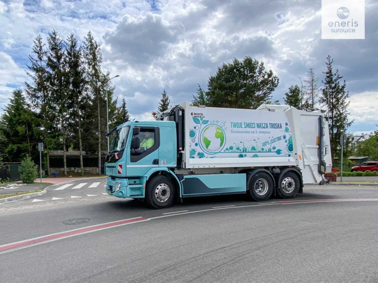 Firma Eneris rozpoczęła testy elektrycznych pojazdów do odbioru odpadów. Na ulice Kielc wyjechał jeden z dwóch takich pojazdów dostępnych w Polsce.