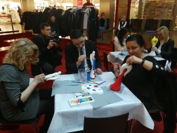Stoliki przy których malowane są Anioły Hani zapełnione są do ostatniego miejsca. Każda figurka barwiona jest wedle własnej koncpecji, a najważniejsze jest to by pomóc potrzebującej dziewczynce. Wśród osób, które przyozdabiają anioły jest między innymi dyrektor Europejskiego Centrum Bajki imienia Koziołka Matołka w Pacanowie, Karolina Kępczyk.