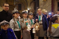 Setki harcerzy z całego województwa przyszły w niedzielę do kieleckiej katedry, by wziąć udział w uroczystości przekazania Betlejemskiego Światła Pokoju. Eucharystii przewodniczył ksiądz biskup Jan Piotrowski.