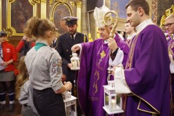 W trakcie uroczystej Mszy świętej w bazylice katedralnej harcerze wręczyli przywiezione z Zakopanego światło księdzu biskupowi Janowi Piotrowskiemu, który następnie przekazał je przedstawicielom poszczególnych hufców: