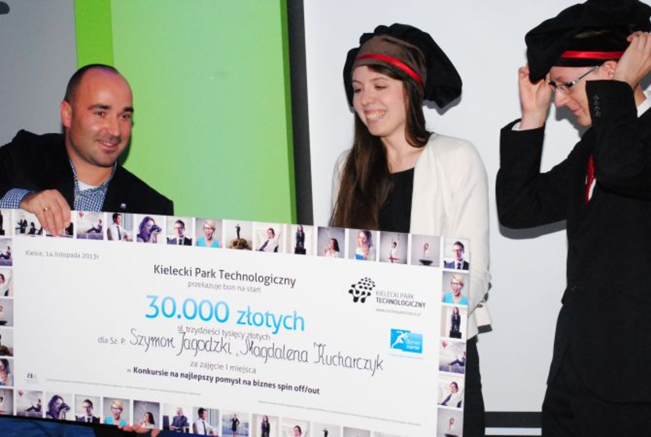 Magdalena Kucharczyk, studentka Politechniki Świętokrzyskiej oraz Szymon Jagodzki, student Uniwersytetu Jana Kochanowskiego, zdobyli główną nagrodę w konkursie Kieleckiego Parku Technologicznego „Najlepszy pomysł na biznes”. W ich ręce trafił bon o wartości 30 tysięcy złotych.