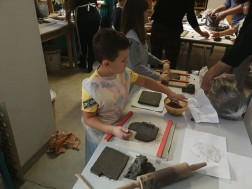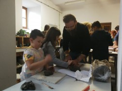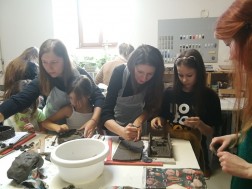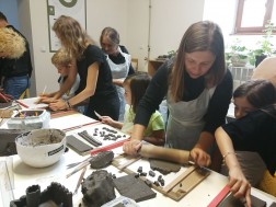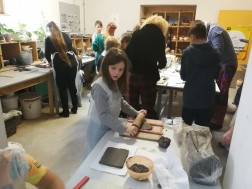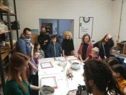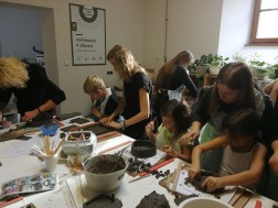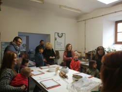 Dzisiejsze warsztaty rozpoczęły się od krótkiego wykładu historycznego prowadzonego przez historyków OMPiO. Magdalena Lang-Trela oraz Wojciech Wielgus opowiedzieli o naszych regionalnych zamkach. Dzieci i rodzice poznali między innymi historie takich budowli, jak zamek w Chęcinach, Pałac Biskupów Krakowskich, zamek w Podzamczu Piekoszowskim czy Krzyżtopór w Ujeździe. Następnie uczestnicy, w ramach warsztatów, wykonali własne donice na kształt zamku.