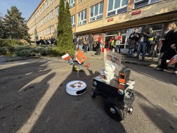 Wykonane z elektrośmieci łaziki przeszły dziś test bojowy na kieleckich ulicach w ramach finału konkursu. W pierwszym „przemarszu łazików marsjańskich” z Zespołu Szkół Elektrycznych na Politechnikę Świętokrzyską maszyny pokonały 550 metrów.