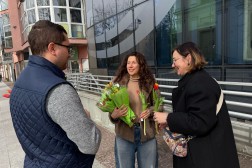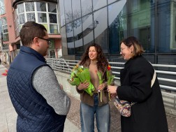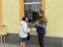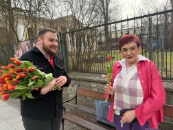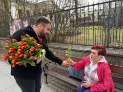 Wszystkie panie były mile zaskoczone kwiatowymi upominkami i przyjmowały je z uśmiechem.