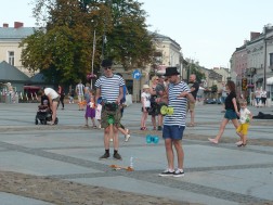 Trwa Pierwszy Festiwal Sztuk Ulicznych. W niedzielę 16 sierpnia po Sienkiewce przechadzają się szczudlerzy, mimowie, bąblarze i grajkowie. Mnóstwo ludzi bierze udział w zabawach na kieleckim Placu Artystów i na Rynku.