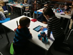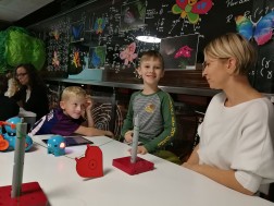 Dzieci, które wzięły udział w warsztatach zatytułowanych „Ramię w ramię z robotem” zaprogramowały małego Dota w taki sposób, by ten umiał mrugać okiem, uśmiechać się bądź wykonywać obie te czynności na raz. - Takie zadania być może brzmią skomplikowanie, jednak - jak się okazuje - nie są w cale takie trudne. Te roboty są dość proste w obsłudze, wystarczy do tego aplikacja zainstalowana na tablecie lub telefonie. Składa się ona z bloczków kodu, które są odpowiednio przygotowane, a my składamy je jak klocki lego, po czym robot odpowiednio odczyta sobie polecenia i zareaguje – wyjaśniał