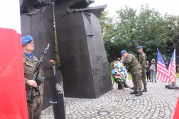 W uroczystościach rocznicowych wzięli udział przedstawiciele władz miasta i województwa, a także służby mundurowe, w tym amerykańscy żołnierze stacjonujący w Centrum Przygotowań do Misji Zagranicznych.