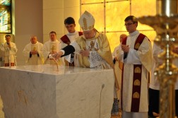 Uroczystej konsekracji dokonał ks. biskup Kazimierz Ryczan. – Jan Paweł II został z nami modlitwą – mówił ks. biskup. Podkreślał również, że ołtarz jest centralnym miejscem kościoła, gdzie składana jest Najświętsza Ofiara. – Kto nie docenia święta i świętowania, ten nie docenia Boga – mówił ks. biskup i pytał: - Dlaczego w Polsce rozpada się aż 60 procent małżeństw? Przestali świętować i nawiedzać świątynię. Dlaczego tyle procesów sądowych i nienawiści? Przestali świętować niedzielę. Budujcie w sercu drogę do świątyni. Życie będzie piękniejsze, rodzina piękniejsza i Polska będzie piękniejsza.