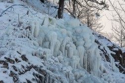 Przypomnijmy, że lodospad to kilkaset ton wylanej wody, która po zamarznięciu tworzy imponujące warstwy przypominające lodową górę. Lodospad powstaje dzięki członkom Świętokrzyskiego Klubu Alpinistycznego oraz pracownikom Geoparku. W piątek, 6 grudnia, w uroczystość Trzech Króli prezentował się tak jak na zdjęciach poniżej.