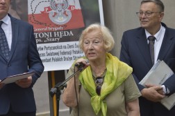 Po zakończeniu Mszy Świętej poczty sztandarowe przemaszerowały pod budynek Ośrodka Myśli Patriotycznej i Obywatelskiej, czyli dawne więzienie, które było celem akcji z 1945 roku. Na miejscu odśpiewano hymn państwowy oraz wysłuchano świadectw, w tym wzruszającego wystąpienia córki kpt. Antoniego Hedy „Szarego”.
