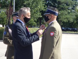 – Święto Wojska Polskiego to najważniejsze święto dla każdego żołnierza i każdego obywatela. Obchodzimy je w setną rocznicę Bitwy Warszawskiej. Od końca lipca do pierwszych dni września 1920 roku rozstrzygnęło sie decydujące starcie pomiędzy Polską a bolszewicką Rosją. Krwawe zmagania toczyły na przestrzeni blisko półtora tysiąca kilometrów. Wojna z 1920 roku pokazała ogromny wysiłek całego narodu polskiego i mniejszości narodowych. Wojsko polskie nie pozwoliło na odebranie niepodległości – mówił płk Chabielski. – Dziś pamiętajmy o tych, którzy przelali krew w walce o niepodległość, nienaruszalność granic oraz przetrwanie narodu. Chylimy czoła przed tymi, którzy oddali życie po to, abyśmy teraz mogli żyć w wolnej i niepodległej Polsce – dodał.