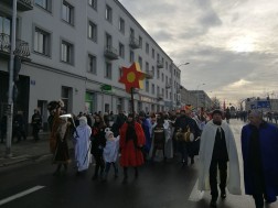 Barwny korowód zaczął się formować od godziny 12 na placu przed Wojewódzkim Domem Kultury. Punktualnie o godzinie 12.30 zgromadzeni przemaszerowali ulicami ks. Piotra Ściegiennego oraz Jana Pawła II pod kielecką bazylikę katedralną, śpiewając wspólnie kolędy.