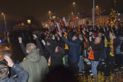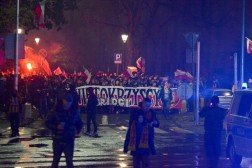 Kibice Korony Kielce przed ligowym meczem z Jagiellonią Białystok wspólnie przeszli ulicami miasta. Marszem uczcili 105 rocznicę odzyskania niepodległości.