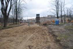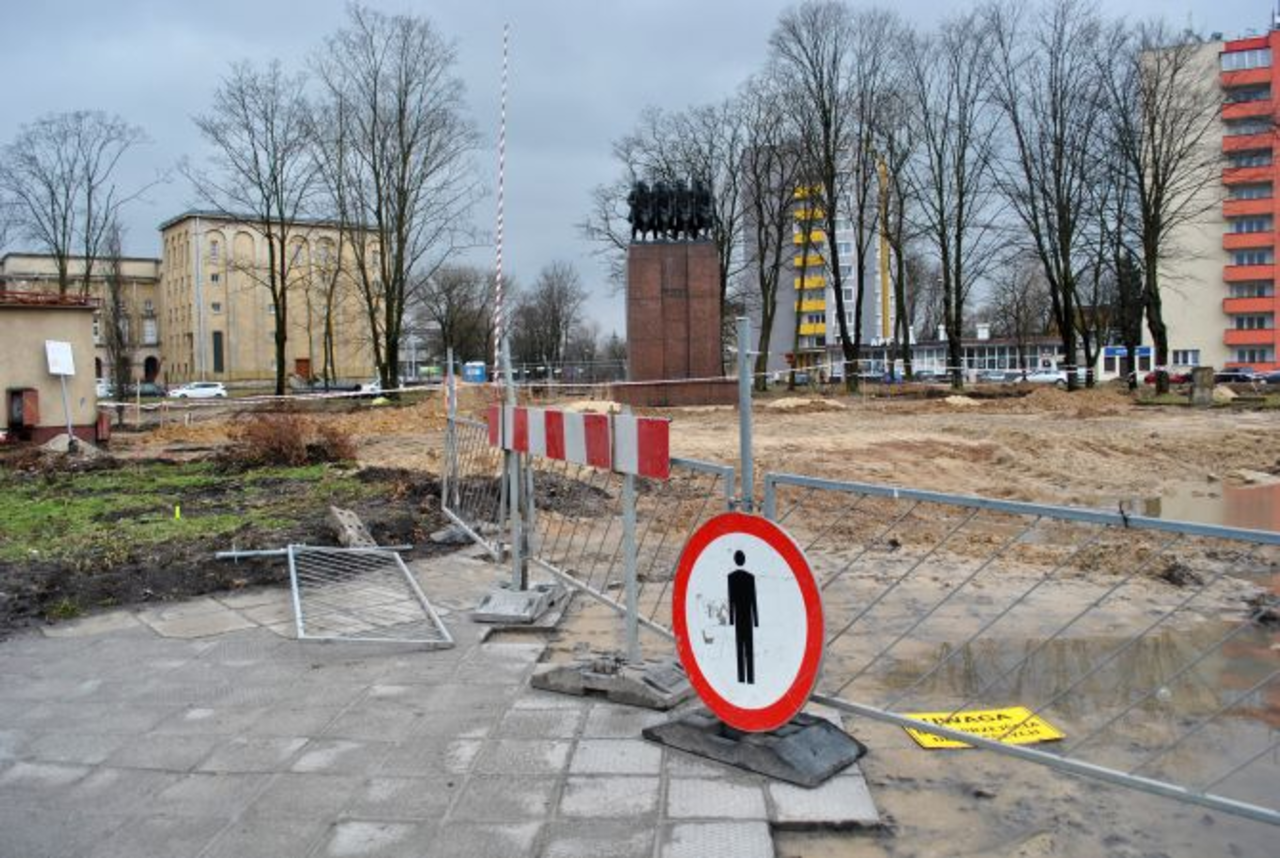 Trwają pracę przed Wojewódzkim Domem Kultury w Kielcach. Na placu przygotowano już fundament pod nowy cokół pomnika Czynu Legionowego, który zostanie przesunięty o kilkanaście metrów.