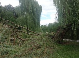 Jak poinformowało Rejonowe Przedsiębiorstwo Zieleni i Usług Komunalnych w Kielcach, skutki piątkowych burz są naprawdę potężne, a największe najprawdopodobniej w Dolinie Silnicy. Silny wiatr powalił tylko tam przynajmniej kilkanaście wierzb i klonów. Spadający konar złamał latarnię, a inny wpadł wprost na ławkę.