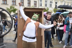Głośne „Polibuda!” i „Uniwersytet!” słychać było przed głównym wejście do Ratusza mimo niesprzyjającej pogody. Studenci, w pomysłowych przebraniach, dotarli tutaj z terenu Politechniki Świętokrzyskiej. Nie zabrakło Shreka i Fiony, bohaterów „Domu z papieru”, czy „Gwiezdnych Wojen”. Celem było tradycyjne odebranie kluczy do miasta.