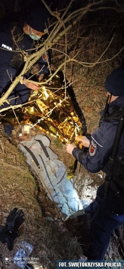 Na poszukiwania ruszyło 34 policjantów oraz przewodnik z psem tropiącym. Funkcjonariusze dokładnie sprawdzili pobliskie zarośla i nieużytki - na szczęście około północy udało się odnaleźć zaginionego. Mężczyzna wpadł do rowu i nie był w stanie wyjść, nie był także należycie ubrany. Policjanci okryli seniora ciepłym kocem i bezpiecznie przenieśli do załogi pogotowia ratunkowego.