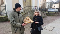 Takie miłe spotkania lubimy najbardziej. Przechodzący ulicą Sienkiewicza mogli otrzymać od nas pączka za… jeden uśmiech.