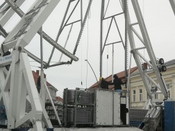 Elementy konstrukcji dotarły do Kielc wczoraj na trzech ciężarówkach i wczoraj też rozpoczęto prace przy instalacji 30-metrowego diabelskiego młynu. Jak podkreślają pracownicy zajmujący się rozkładaniem gigantycznej karuzeli, pomimo mrozu nic nie zakłóca prac, wszystko idzie zgodnie z założonym wcześniej planem.