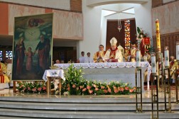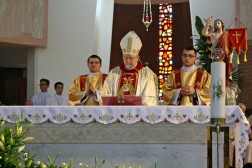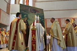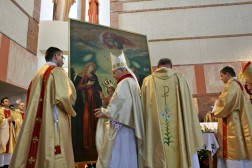 Biskup Kazimierz Ryczan podczas uroczystej mszy świętej w Sanktuarium Józefa Opiekuna Rodziny w Kielcach ukoronował wizerunek Najświętszej Rodziny z Nazaretu.