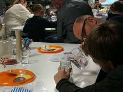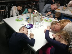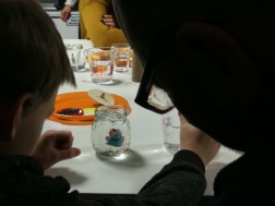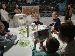 Uczestnicy mogli się również dzisiaj poczuć niczym Leonardo da Vinci. Przy użyciu lusterka odczytali oni specjalnie skryte hasło. Oprócz tego używając szklanki z wodą oraz bagietki i gliceryny wykonano eksperyment wyjaśniający zasadę załamywania się światła.