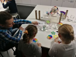- Teraz robię taką historyjkę z obrazków. Wcześniej zrobiłem eksperyment, z którego dowiedziałem się, że jak na jednej stronie kartki jest ptaszek, a na drugiej klatka i zaczniemy kręcić tą kartką to okazuje się, że mamy jeden obrazek - opowiadał o zjawisku Taumatropi mały Bartek.