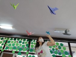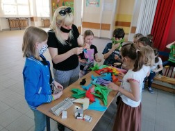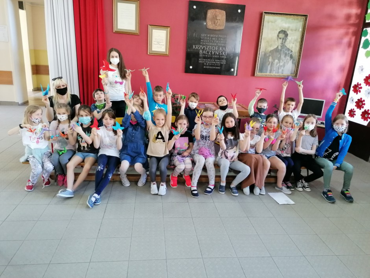 – Krzysztof Kamil Baczyński, jako wspaniały poeta i plastyk, był bardzo czuły na piękno przyrody. Fauna i flora bardzo często pojawiają się w jego utworach, między innymi w wierszu "Znów wędrujemy". Ten utwór skojarzył się naszej społeczności szkolnej z ptakami powrotnymi z tego utworu, dlatego postanowiliśmy wspólnie z uczniami przygotować papierowe ptaki origami – mówi Patrycja Karykowska z biblioteki szkolnej "U Sowy Poczytajki".