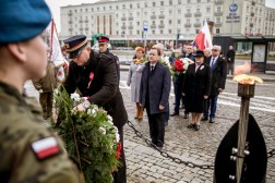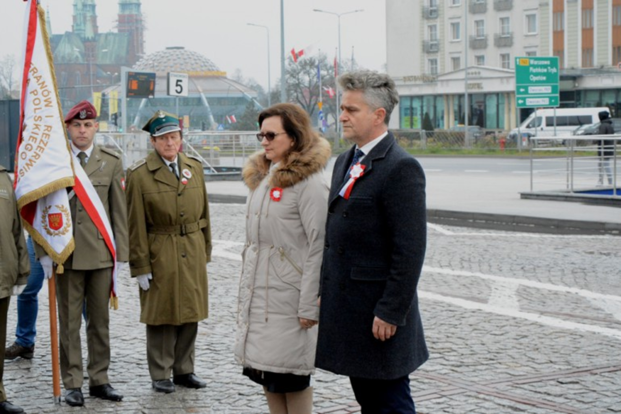 Uroczystości, jak co roku, zainaugurowane zostały przed pomnikiem na Placu Niepodległości. – Ponad sto lat temu odzyskaliśmy niepodległość i zaczęły się tworzyć struktury Państwa Polskiego, ale okazało się, że niepodległość nie jest dana raz na zawsze. Udowodnił to rok 1920 i 1939. Wówczas nasi rodacy musieli chwycić za broń. Dziś żyjemy w wolnym kraju, o który musimy dbać, ale również pamiętać o naszych bohaterach – dodała Agata Wojtyszek. W uroczystości wziął udział również senator Krzysztof Słoń, wicemarszałek Renata Janik oraz przedstawiciele władz województwa i miasta.