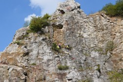 Ania i Paweł ze Świętokrzyskiego Klubu Alpinistycznego sprzątali skałkę geologów. Aby się na nią dostać, zjechali tyrolką. – Chcemy pozbierać śmieci z kominów jaskiniowych. Ludzie zrzucają z góry butelki i papierki, a te nie zawsze spadają na sam dół, często zatrzymują się na urwiskach.