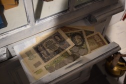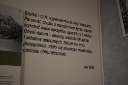 Następnie wchodzimy do pomieszczenia, które wygląda na typowy pokój mieszczański z tamtego okresu. Tutaj uwaga skupia się na kolejnym obszarze, czyli obszarze edukacyjnym. Znajdujemy książki leżące na stole, tablicę upamiętniającą osoby zasłużone w tej sferze życia okupacyjnego, ale również ukryte w szufladzie materiały książkowe, za które groziły wysokie kary.