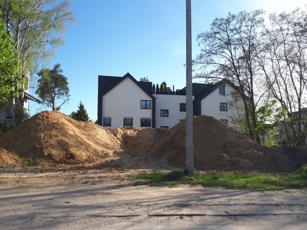 Piach został przywieziony na Baranówek 4 maja 2021 roku. Mieszkańcy skarżą się, że inwestor uprzykrzył w ten sposób życie osobom z trzech bloków.
