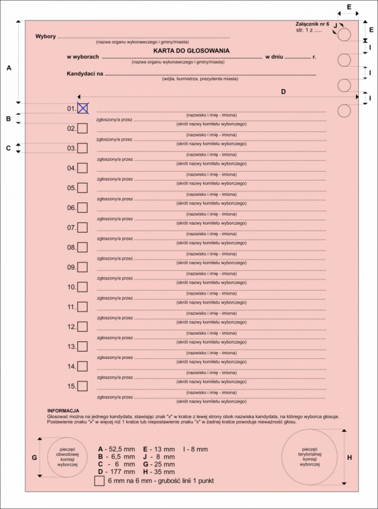 W przypadku głosowania na prezydenta Kielc (karta do głosowania koloru różowego), wybrać można tylko jednego kandydata, stawiając na karcie do głosowania znak „X” w kratce z lewej strony obok nazwiska kandydata. W innym przypadku głos jest nieważny.
