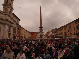 13 - Rzym - Piazza Navona- tłum wiernych głównie z Polski, kościół Sant Agnese in Agone w tle