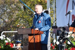 W krótkim wystąpieniu wiceminister spraw zagranicznych Piotr Wawrzyk poprosił zebranych, aby nagrodzili oklaskami służących obecnie na polsko-białoruskiej granicy mundurowych