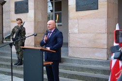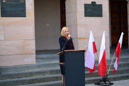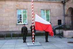 Następnie uczestnicy przeszli na plac pod Wojewódzkim Domem Kultury, gdzie odbyło się uroczyste podniesienie na maszt flagi państwowej.