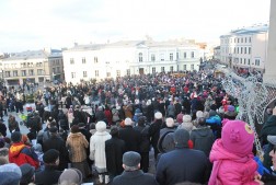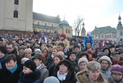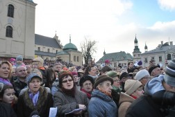 Orszaki spotkały się na Placu NMP przy katedrze, gdzie odbyło się wspólne kolędowanie z udziałem ks. biskupa Mariana Florczyka, który podziękował kielczanom za liczne przybycie: – Powstaje nowa tradycja kolędowania w Święto Objawienia Pańskiego. Śpiewem wielbimy Boga – mówił biskup.