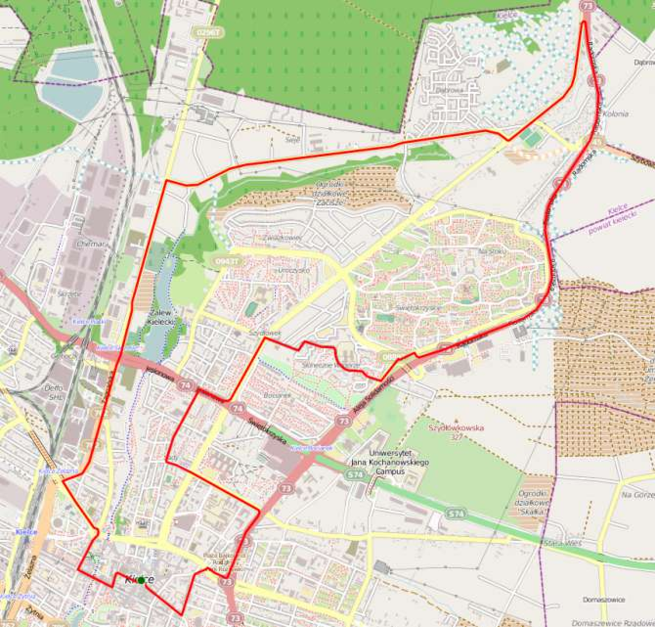 Trasa sierpniowej Kieleckiej Masy Krytycznej przedstawiona jest na załączonym obrazku.