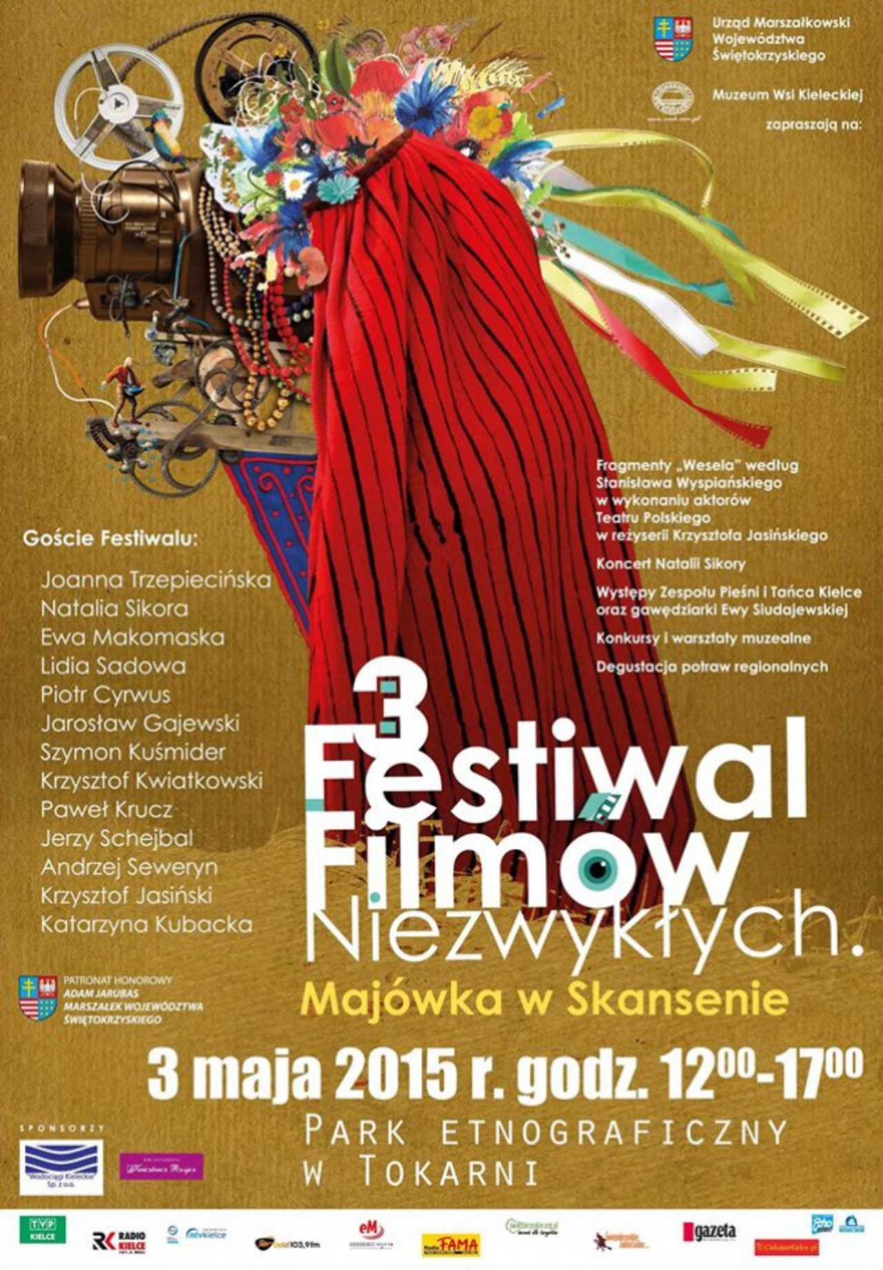 Z kolei 3 maja w skansenie odbędzie się finisaż III Festiwalu Filmów Niezwykłych, który potrwa od godziny 12 do 17. Tematem przewodnim tegorocznego wydarzenia jest wesele. Odwiedzający będą mieli okazję zobaczyć fragmenty spektaklu „Wesele” Stanisława Wyspiańskiego, w reżyserii Krzysztofa Jasińskiego w wykonaniu aktorów Teatru Polskiego. O godz. 15:30 rozpocznie się koncert Natalii Sikory. Tego dnia rozstrzygnięty zostanie również konkurs na najbardziej tradycyjną potrawę i napitek weselny.
