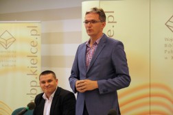 −z Andrzejem Dąbrowskim, dyrektorem Wojewódzkiej Biblioteki Publicznej w Kielcach na projekt „Rozwój zasobów WBP im. Witolda Gombrowicza w Kielcach – Centrum Multimedialne” (całkowita wartość przedsięwzięcia to 15 mln 89 tys. zł, w tym 12 mln 71 tys. zł dotacji z RPO),