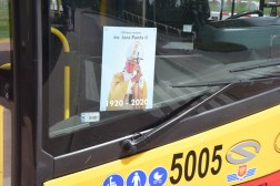 Wizerunek św. Jana Pawła II na przedniej szybie każdego autobusu – to pomysł Miejskiego Przedsiębiorstwa Komunikacji w Kielcach na uczczenie setnej rocznicy urodzin papieża Polaka. Akcja rozpoczęła się w sobotę i potrwa do poniedziałku.