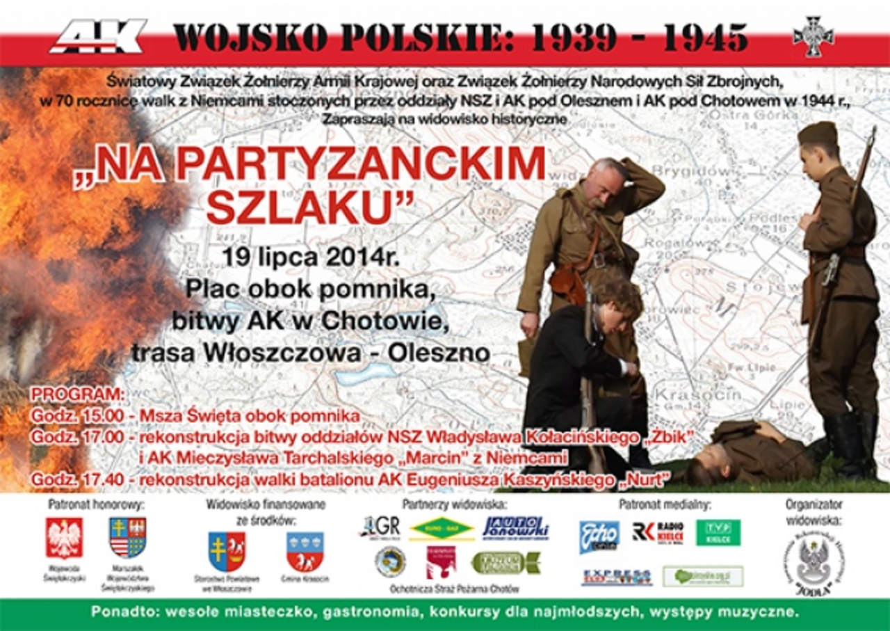 W tym roku obchodzimy 70. rocznicę dwóch ważnych na ziemi włoszczowskiej rocznic: bitwy pod Olesznem – wspólna akcja oddziałów Narodowych Sił Zbrojnych i Armii Krajowej, które rozbiły niemiecki oddział oraz bitwy pod Chotowem – jedna z ostatnich, dużych walk jaką przeprowadził I Batalion 2 Pułku Piechoty Legionów AK, pod dowództwem majora Eugeniusza Gedymina Kaszyńskiego ,,Nurta".