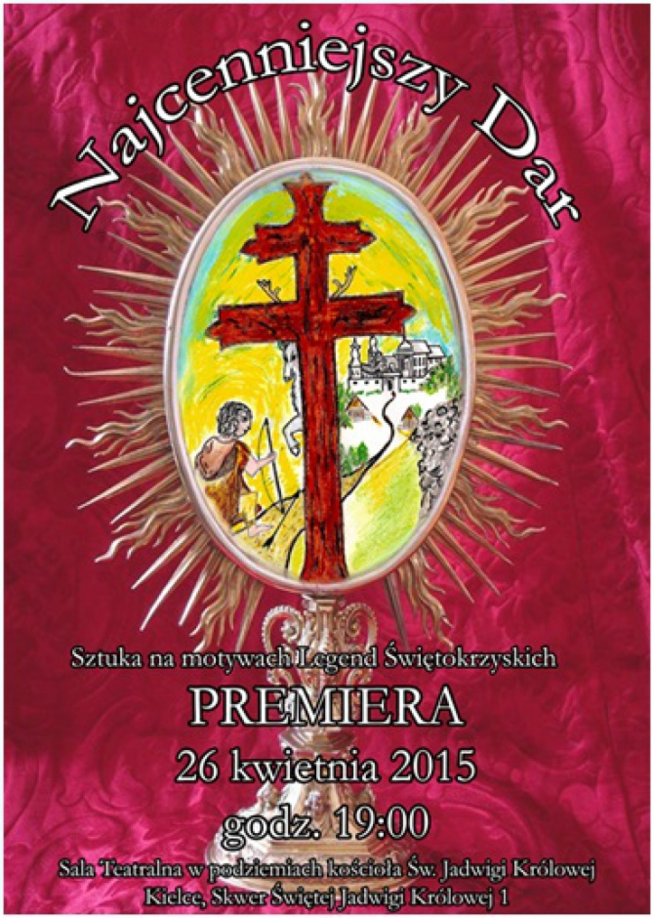 Spektakl wystawiony zostanie w sali teatralnej w kościele pw. św. Jadwigi Królowej w Kielcach.