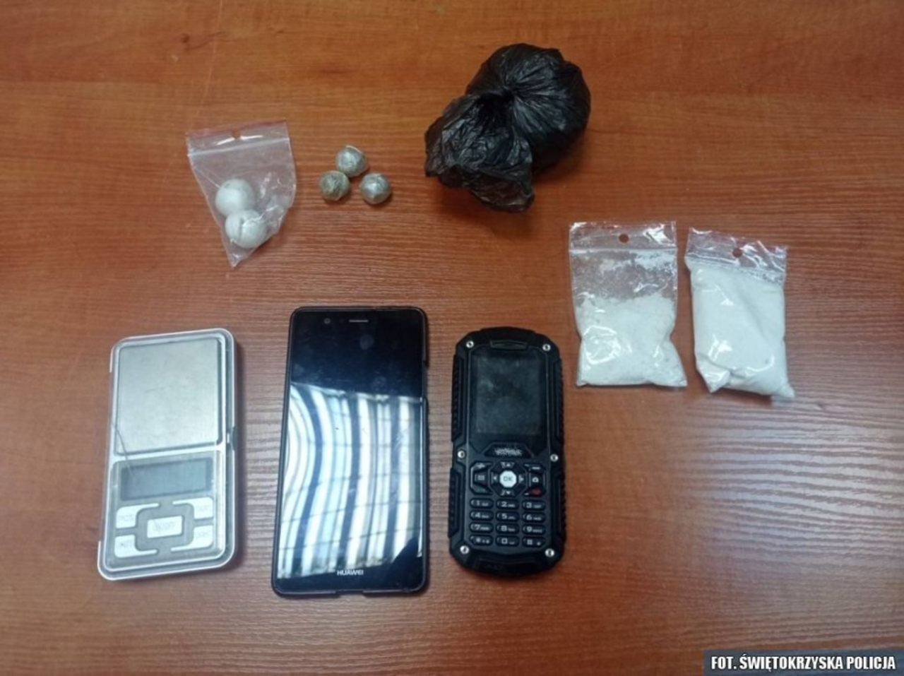 - U starszego z nich, między innymi w rękawiczce lateksowej mundurowi znaleźli blisko 70 gramów białego proszku, wstępnie zidentyfikowanego jako amfetamina. Policjanci zabezpieczyli także zawiniątka z zawartością suszu o wadze blisko 30 gramów, który wstępnie okazał się marihuaną – informuje Małgorzata Perkowska-Kiepas z KMP w Kielcach