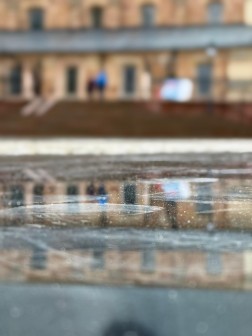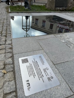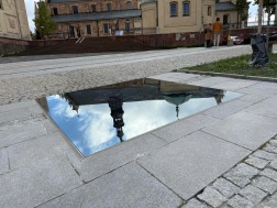 Jak czytamy w opisie instalacji autorstwa Marka Cecuły: „Szklana tafla o wymiarach 2 m x 2 m z powłoką lustrzaną została osadzona w powierzchni chodnika, integrując się z otoczeniem i tworząc w płaszczyźnie placu efekt ruchomego obrazu”.
